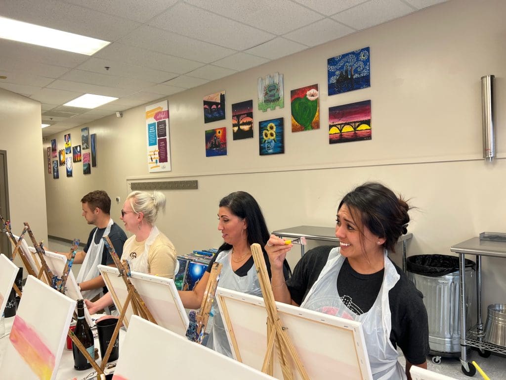 We love getting together as a work family to enjoy some hard earned fun. This time we got to learn a thing or two about painting at the same time!